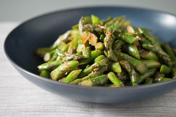 Asparagus gets a touch Spring Fever with this magical concoction of crushed toasted benne seeds, mirin, and soy. Simple, fresh, delicious. Champagne, please.