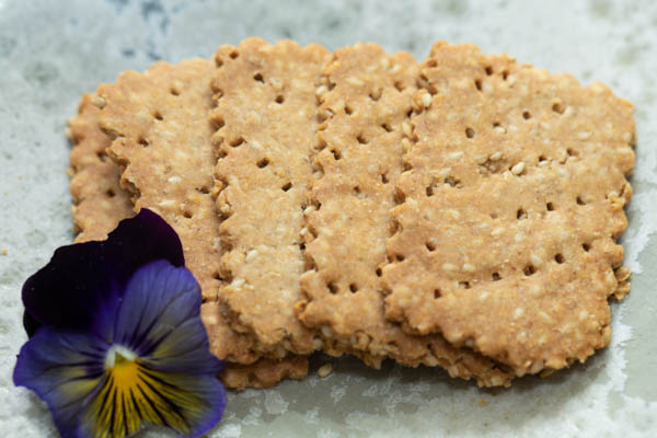 Benne wafers are a thing. But these benne wafers aren’t like those things. These benne wafers are dainty, almost fragile, with crisp fractured benne seeds, flour, and butter. The flour is our gluten-free blend—not chosen for gluten avoidance, but for flavor and performance. When we considered bringing back pimento cheese for a summer outing, the idea of creating just such a cracker was irresistible.