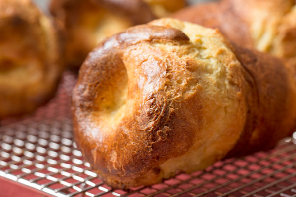 Larger than life, lighter than air, nothing embodies astonishment like the humble popover. Its distant ancestor, Yorkshire pudding, has been trapped under a fat-dripping roast for a couple of centuries, but leave it to the Americans to bake two words into a single pastry, and, dare we say, make it lighter, crisper, better? Ah, and wait until you taste a popover baked with Anson Mills French Mediterranean White Bread Flour for the ultimate in popover prowess: a thin, rather buttery patina, magnificent browning, and moist interior under the faint flavors of sweet dark berry, fresh cream, and Brazil nut that manifest only when heirloom flour is alive and new crop–fresh from the field.