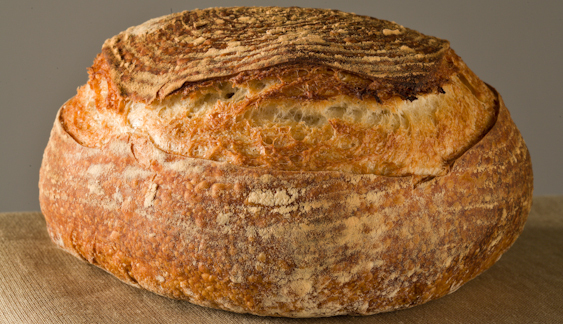To bake the bread, transfer the pot briefly from the stone to the open oven door, slide the dough onto the stone, and lower the pot over the dough to bake. If baked without a cloche, this bread will have a tough crust and compromised height.