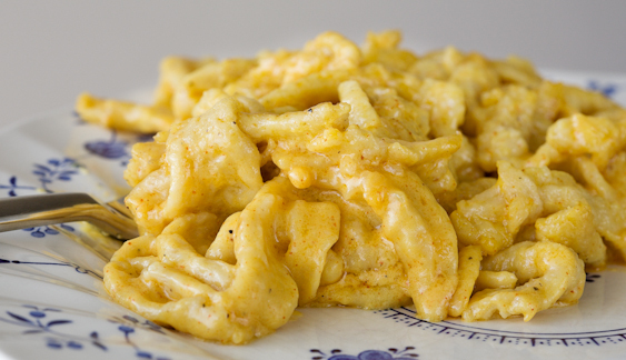 Mac and cheese is a wonderfully sinful dish—but it’s not always perfect. You know how the mac goes limp when it bakes? How the under layers capitulate to the molten cheese and lose their integrity? Well, with German engineering, this just doesn’t happen. Made with spätzle, mac and cheese keeps its character—in fact, the spätzle bites back a little. And you? You find yourself powerless to resist it.