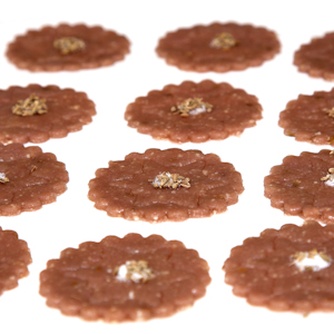 Divide the dough evenly into 2 pieces, about 7 ounces each. On a sheet of parchment paper cut to fit in a baking sheet, roll out one piece of dough to a 1/16-inch thickness (fig. 2.1). (You won’t need flour or a top sheet of parchment to roll it out.) Slide the parchment onto a baking sheet and refrigerate the dough. Roll out the second piece in the same fashion. Refrigerate the dough for 15 to 20 minutes.
