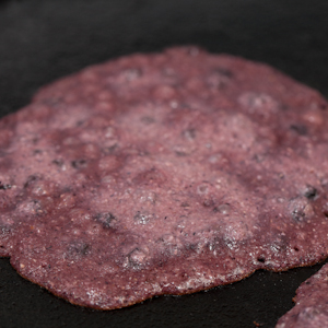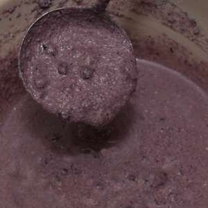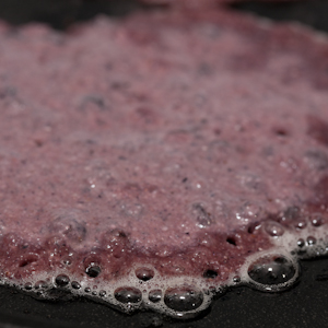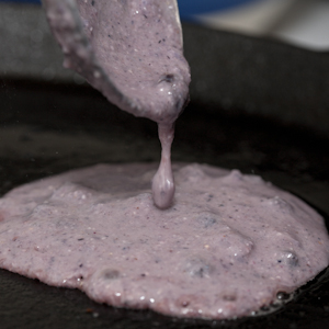 This batter is unleavened and will—indeed should—appear alarmingly thin. So, remember: the batter is thin and the griddle hot. If the griddle is hot enough, the batter will run out quickly into a wide, thin circle, the hot surface gripping and stopping the batter in its tracks. Once on the griddle, watch the color of the cornmeal on the uncooked side: it will turn from dusty mauve to deep purple as it cooks. Don’t turn the cake until its surface becomes dry on the edges. As you cook the cakes, you may want to thin the remaining batter with additional warm milk.