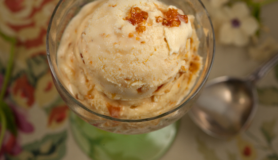 The results were tasty but inelegant. We made praline and toffee candy and plied each with grits, occasioning other problems: the hot sugar either fried the grits or the grits caused the butter to run out of the toffee. But in that errant, fleeing butter came a revelation: the flavor of the brown butter drove us wilder than anything else. And so we slid it surreptitiously into the ice cream base, leaving the grits to their own devices. The brown butter gave the ice cream a gorgeous mousseline sheen that comes only when cooked egg yolks encounter melted butter, and a delicate, unforgettable flavor—more guileless and innocent than either butterscotch or caramel. (The organic sweet Jersey cream we got from our favorite farm stand in Shaftsbury, Vermont didn’t hurt either.)