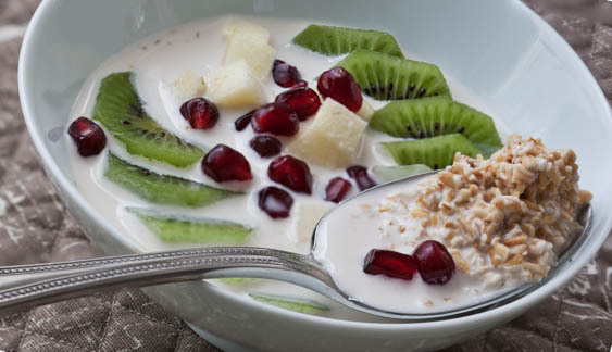 The following morning, spoon the müsli into serving bowls and enjoy with any kind of fruit that suits your fancy and sugar or honey, if desired.