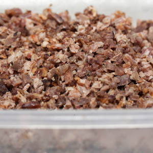 When the spareribs and shanks are cool enough to handle, pull the meat from the bones; discard any fat, gristle, and cartilage and return the bones to the roasting pan in the oven. With a chef’s knife, chop the meat until very finely minced (fig. 2.1). You should have 8 to 9 ounces (2 cups lightly packed); if you have more, save it for a soup. Put the minced meat into an airtight container and refrigerate until needed.
