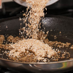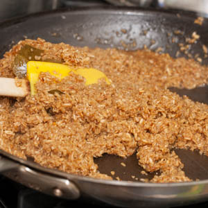 Pay attention to the timing on this recipe: there is a balance between liquid ratios and cooking times that must be observed to keep the oats in their optimal state. It is also important that the minced meat be hot when you mix it in with the oats as we advise below.