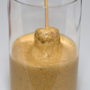 Spoon some pickled onions into a small bowl (taking very little balsamic with them) and mix in Dijon mustard to taste. Set the dipping sauce aside until you’re ready to serve.