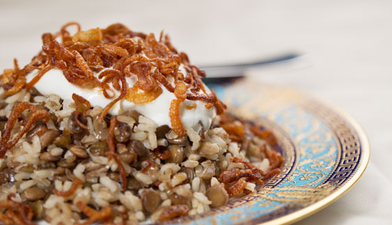 Mujadara—with crisp shallot sprinkles.