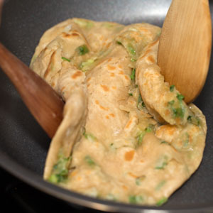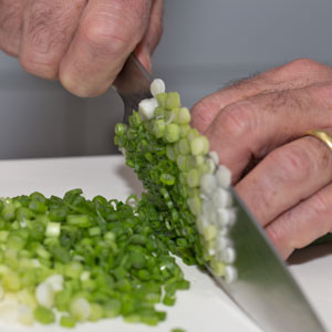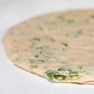 Most recipes for scallion pancakes call for just the green sections. But we found the moist white part of the scallion offers both increased flavor and creaminess to the pancakes’ interior. Don’t precut the scallions and leave them sitting around—they lose their fresh, sweet flavor and taste like soap!