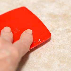 Cut two sheets of parchment paper about 18 inches long. Turn the dough out onto a clean work surface and knead it gently just until it comes together into a cohesive mass. Set the dough on the parchment and pat it into an 8- by 6-inch rectangle (fig. 5.1). Lay the second sheet of parchment on top. Using a rolling pin, roll out the dough to a 15- by 11-inch rectangle. If some of the dough goes outside the parchment, trim it with a plastic dough scraper or bench knife, patch it back into the mass, and continue rolling. Use the dough scraper to level any thicker areas dough by applying light pressure and sweeping toward the edges (fig. 5.2). The dough rectangle should be of an even 3/16- to ¼-inch thickness, no thinner and no thicker (fig. 5.3). Slide the parchment onto a baking sheet and refrigerate for at least 30 minutes or for up to 2 days.