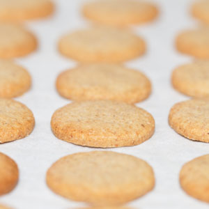 Adjust the oven rack to the middle position and heat the oven to 350 degrees. Line two baking sheets with parchment paper. Remove the dough from the refrigerator and lay the parchment-sandwiched dough on the work surface. Peel off the top sheet of parchment, lay it back in place, and flip the entire package. Peel off the second sheet of parchment. Using a 1¼- or 2-inch plain or fluted round cookie cutter, stamp out as many rounds of dough as possible (fig. 6.1) and place the rounds on the prepared baking sheets, spacing them evenly apart (the cookies won’t spread much during baking). You can gather and reroll the scraps until you’ve used up as much of the dough as possible. Bake the cookies one baking sheet at a time until golden brown at the edges and a few shades lighter at the centers (fig. 6.2), 10 minutes for 1¼-inch rounds or about 15 minutes for 2-inch rounds, rotating the baking sheet halfway through. Let cool completely on the baking sheets on wire racks.