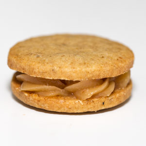 But let’s face it: the big draw of alfajores is their dulce de leche filling. This hypnotically light caramel is made by reducing milk and sugar down, down, down until the sugar and milk solids have taken on a butterscotch hue and coat the spoon like pudding. We chose to make ours from scratch rather than taking the shortcut of boiling a can of sweetened condensed milk in a pot of water. No small effort went into making this happen (turns out there is a reason people boil the can), but Dawn nailed it in the end. The filling is killer. Surrounded on two sides by oat wafer crispness, our alfajores define the urge to take the next bite.