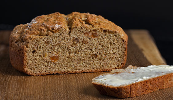 What a fine, moist, rugged country bread it is! Deep nuttiness, faint fruit, and a satisfying array of toasted whole bran and chisel flavors emerge from handmade whole grain rustic graham flour, while pastry flour lightens the bread’s texture and flavors the crumb with a faux butteriness. The crust is thin but crisp. Oh, and just so you know, we sneaked a half cup of black tea–infused golden raisins—and a little shhhh of sugar—into the formula. The raisins perform a charming little jig here and there—delicious and surprising. The sugar is a mere trace element for flavor roundness. Do us a favor and don’t tell anyone from Ireland—or, if you prefer, leave the two interlopers out of the formula altogether.