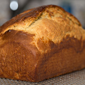 This recipe is not difficult to execute. So burdened by eggs and butter is the formula that a mixer produces more consistently favorable results than the hands (we tried both). Treat the dough like it’s having a day at the spa: nice and easy, a gentle pace, a light touch. Give it a nice slow, slumbering rise, a long chilly overnight nap, etc. Precision in weighing and mixing is paramount. Allow the dough enough time to complete its first proof, and enough to finish its second in-pan rise. Don’t be tempted to throw flour down on the counter or onto the dough. Oh, and work quickly during the hands-on phase. Brioche dough will quite literally have a meltdown if it gets too warm. Rising times are based on an ambient temperature of 74 degrees Fahrenheit.