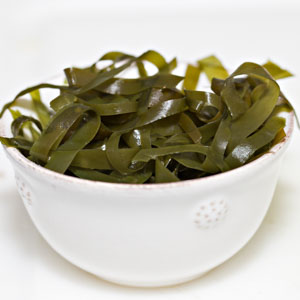 We use dried wakame sold in ribbons, not in flakes, that we rehydrate and cut into slender strips that integrate nicely with the noodles. A good alternative to wakame is seasoned nori cut into fine threads with scissors. Mound the threads onto the portioned soba after sprinkling with the benne seeds.