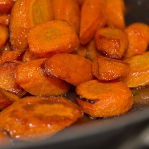 Slow-roasted whole carrots have gained currency over the past few years, but that technique really works only on large, mature “vintage” carrots. We took the peel and slice path. Try to select carrots that are similarly sized and display no dramatic disparity between top and tip diameter, and are not too slender—the slices lose quite a bit of volume in the oven. Also, select firm and snappy carrots—if you can get your mouth on one, taste it, note its sweetness, and reject carrots with any trace of bitterness. A deep carrot-y flavor? Score! If this sounds crazy, it is nothing of the sort! Many old-fashioned heirloom carrots offer extraordinary flavor dimension. Look for them at farmers’ markets or farm stands.