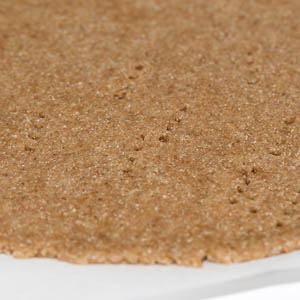 Lay a 12-inch sheet of parchment paper on the counter and dump the dough onto the parchment. Firmly press the dough together, flour the top lightly, and, using a rolling pin, roll it out into an oblong of an even 1/16-inch thickness. The shape of the dough is of little consequence but its thickness is important for even crisping. Prick the dough all over with a fork (fig. 3.1) and slide the parchment onto a baking sheet. Bake until the edges are well-browned (fig. 3.2) and the cookie is baked through, 30 to 35 minutes. Set the baking sheet on a wire rack and let cool to room temperature; leave the oven on. Once cooled, break the cookie into large pieces.