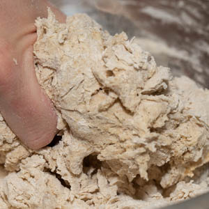 If the dough feels under-hydrated, feel free to sprinkle a few drops of water lightly from your fingertips and give it a light knead. If the dough becomes over-hydrated, however, rolling it out will be very challenging. We recommend little or no additional bench flour for the rolling process.
