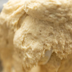 Detach the mixer bowl and scrape the bottom and sides, making sure it is well combined. With the spatula, push the batter into a mass at the bottom. Cover the bowl and set aside at room temperature for 1 hour.
