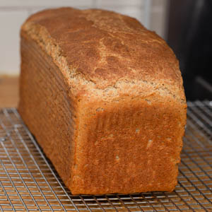In effect, this is a batter bread—mixed and handled like a quick bread rather than a traditional leavened loaf. With no shaping demands, it moves easily from mixer to baked bread in a few hours. Once baked, it mimics very closely the characteristics of a soft wheat sandwich bread.