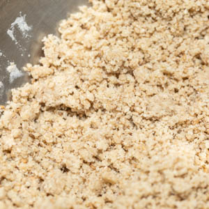 The finished dough should be moist and soft—not dry and flaky or patchy. It shouldn’t be wringing wet, either. It’s mixed in a bowl with a spoon, so start with 1.2 ounces of water and get a read on the texture, adding additional water in droplets as necessary.