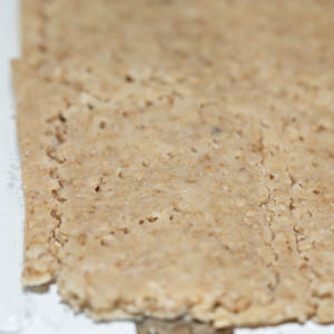 With some reluctance we chose a gallon-size zipper-lock bag to envelope the dough while rolling. Plastic is never our first choice for storage, but in this instance it works so beautifully compared with parchment, we couldn’t resist. The dough transits quickly in and out of the plastic. We store the baked wafers in glass, of course.