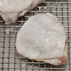By “the right fat,” we mean fat measured by flavor and performance, not simply heat tolerance. The lard, butter, and bacon combination recommended for this recipe comes by way of Edna Lewis (though she uses country ham) and makes an enormous difference in the final flavor of the fry. The fat will reach but halfway up the sides of the skillet because Southern fried chicken is not a deep-fried affair. And speaking of “the right skillet,” we mean one that is cast-iron, straight-sided, 11 to 12 inches in diameter, and 2 to 2½ inches deep. Our current favorite? Butter Pat’s “Joan” with its matching domed glass lid.